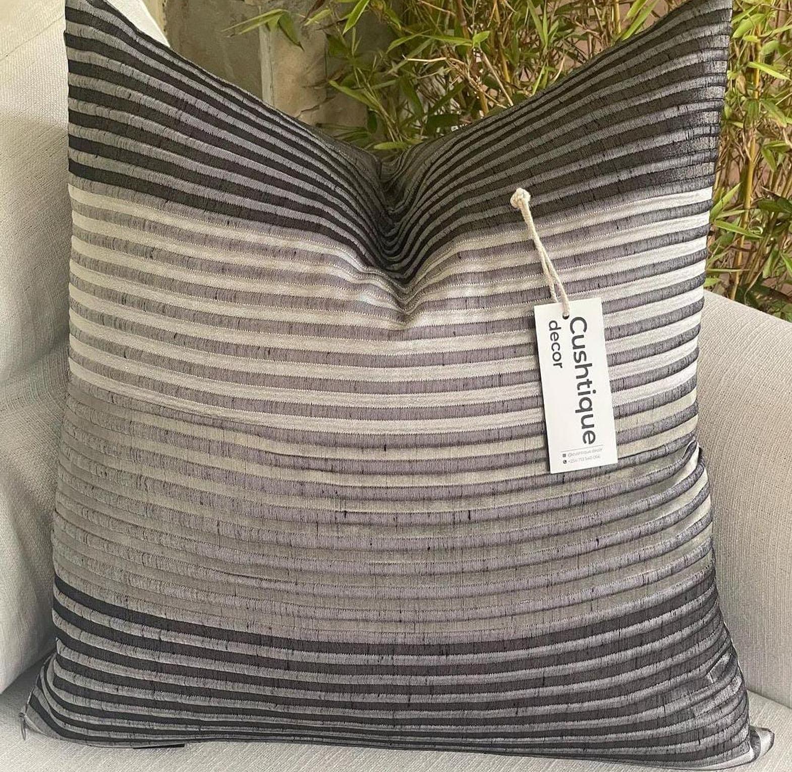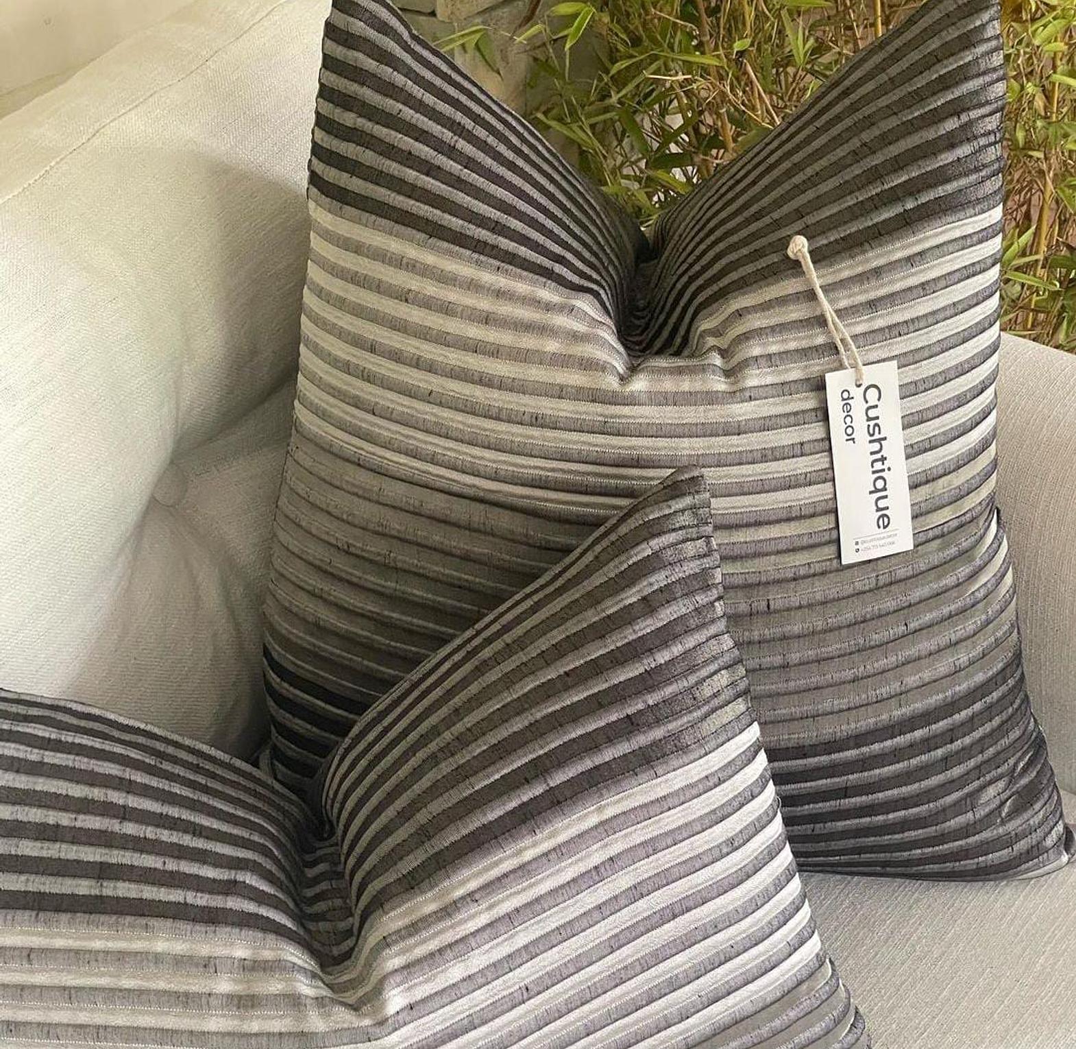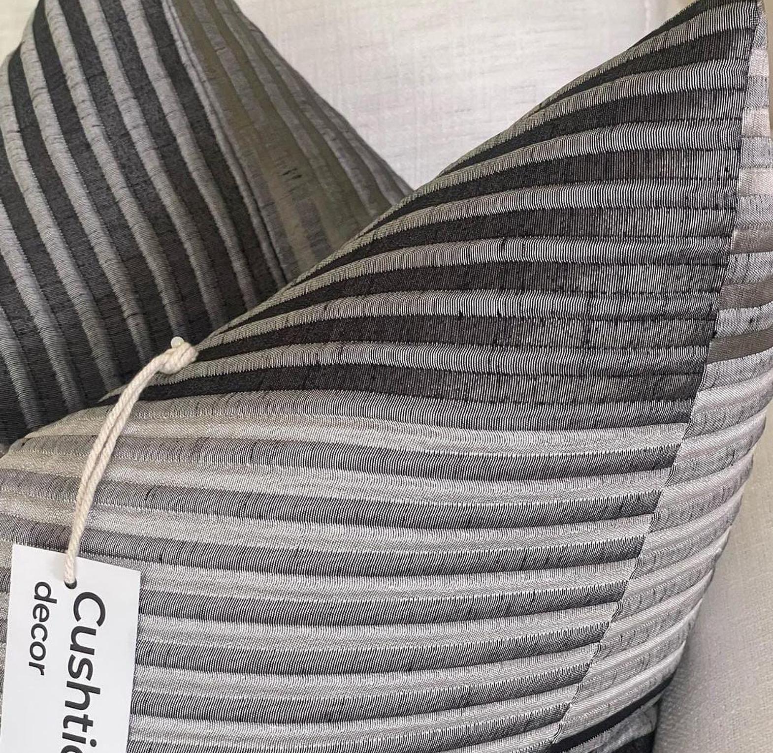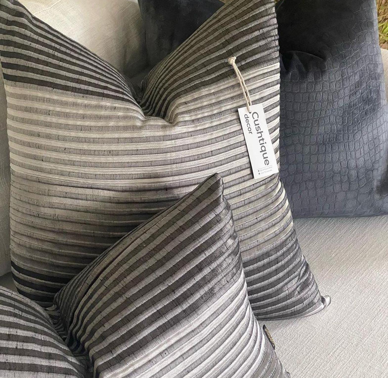 Bring a fresh, dynamic element to your home with our grey striped cushion, featuring a stylish, minimalist pattern that complements a variety of interior styles. The soothing grey tones, enhanced by clean, bold stripes, create a balanced, sophisticated look that works beautifully in both casual and formal settings. Perfect for adding texture and dimension to your sofa, bed, or armchair, this cushion brings both style and comfort to your space. Crafted from soft, durable fabric, it ensures lasting comfort while providing an easy way to elevate the atmosphere of any room