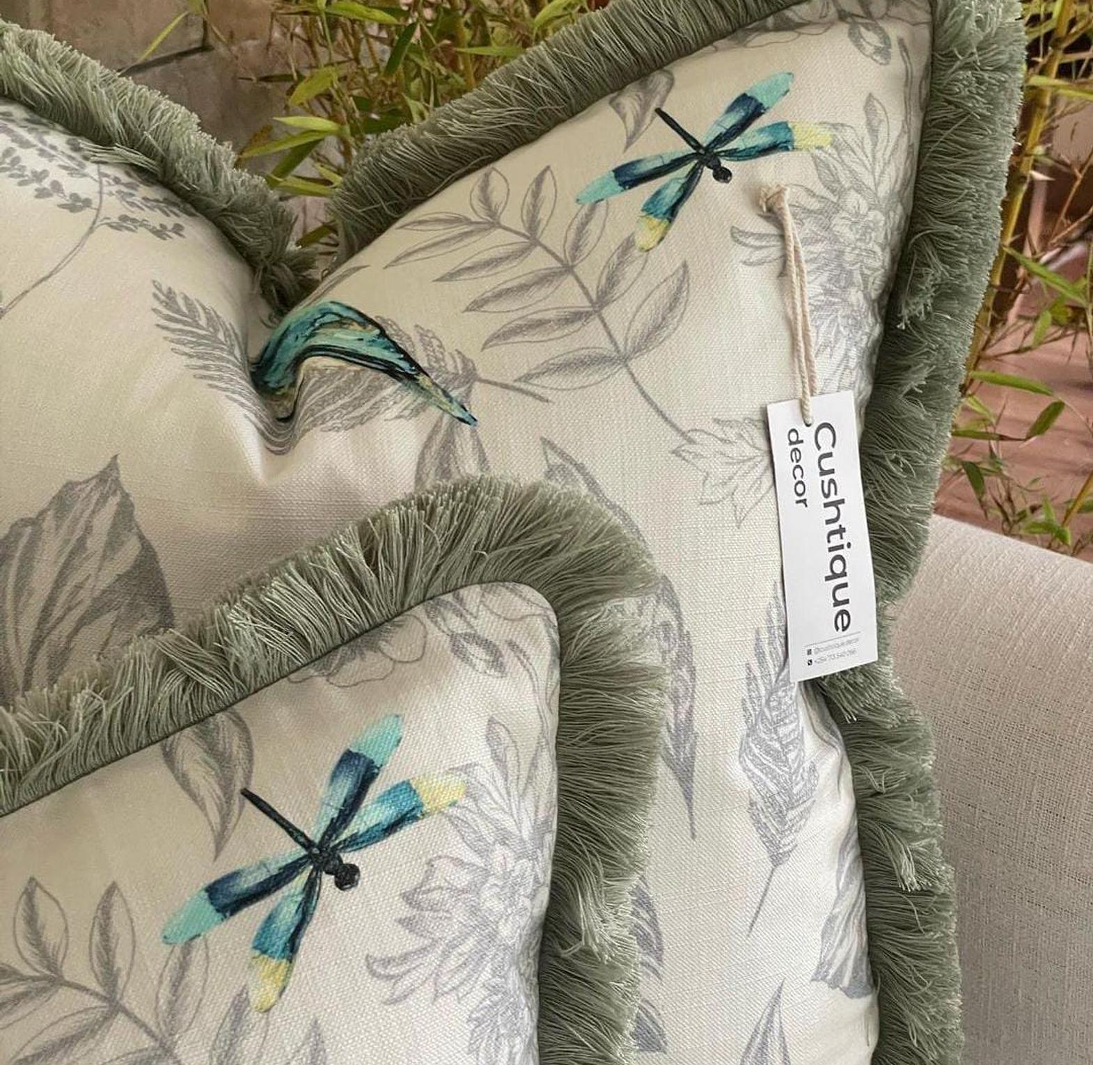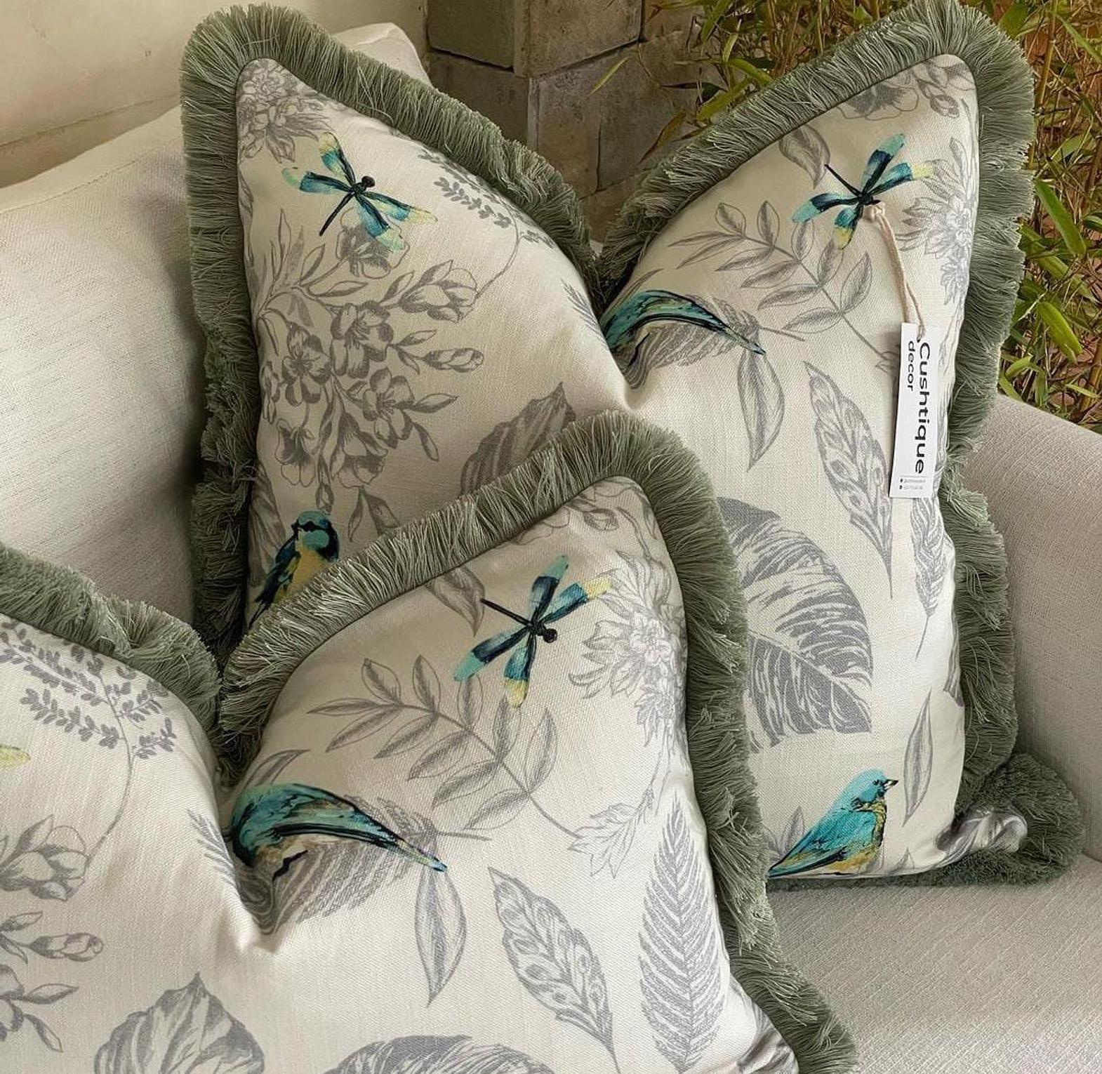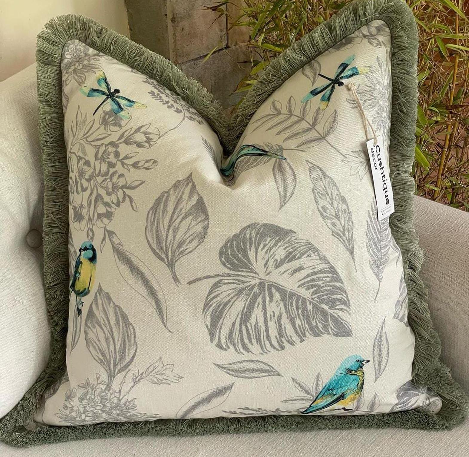 Infuse your space with a touch of charm and serenity with our Songbird Cushion, featuring beautifully embroidered bird designs that evoke a peaceful, natural ambiance. The soft, muted colors of the birds harmonize perfectly with the cushion's luxurious brushed fringe trim, adding a refined, tactile element to the overall design. Whether placed on a sofa, bed, or armchair, this cushion brings a whimsical yet sophisticated flair to any room. Crafted from high-quality materials, it promises comfort, durability, and a timeless style that will enhance your décor for years to come."